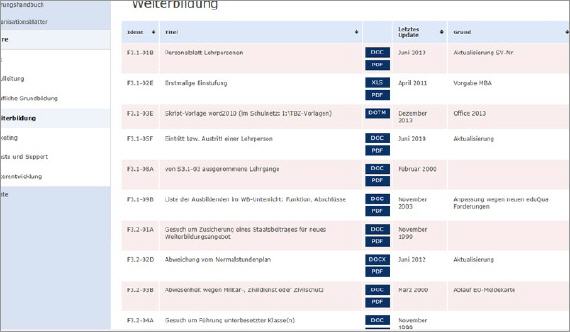 Wer auf die verschiedenen Typen von Dokumenten wie zum Beispiel Prozessbeschreibungen, Formulare oder übrige Dokumente direkt zugreifen will, findet via entsprechende Rubrik auf der Einstiegsseite alle Unterlagen nach Prozess Nr. geordnet. Die Rubriken können nach den verschiedenen Eigenschaften sortiert werden.